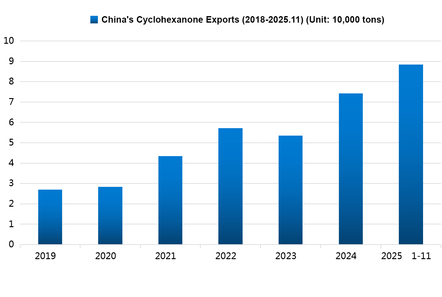 Cyclohexanone exports reached 74,300 tons in 2024 and 88,400 tons from January to November 2025, representing a year-on-year increase of 18.9%. Cyclohexanone exports are expected to continue their slight increase in 2026. Global demand for chemical products is diverging. Developing countries have potential demand for cyclohexanone due to industrial upgrading, but export growth is limited by trade policies and freight fluctuations. Meanwhile, domestic companies need to cope with competition from international counterparts and seek breakthroughs in price and quality; high value-added products may become a key driver of exports.