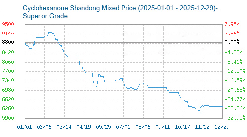 In 2025, the price of cyclohexanone in Shandong Province showed a clear downward trend. At the beginning of the year, the price of cyclohexanone was relatively high. With changes in the market supply and demand pattern, the price gradually fluctuated and fell. In the second quarter, the price of cyclohexanone experienced a significant decline, falling from April 1 to June 30, a drop of 11.72%; the year-to-date decline was 27.84%.