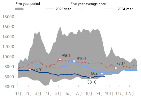 During this period (September 19 to 25, 2025), domestic propylene market prices declined this week. Increased supply and weak demand were the primary factors driving the downward shift in the price center of gravity. The main bearish factor for the propylene market this week was the increased supply brought on by the commissioning of a cracker on the Shandong coast. News of the pending restart of a PDH facility in Dongying further deepened bearish sentiment among industry players, leading to a continued decline in propylene prices. Furthermore, continued PP plant shutdowns due to cost pressures contributed to weak demand, putting pressure on spot propylene prices in both the northern and southern markets. As of now, there has been no significant price differential between propylene monomer and PP, failing to attract active downstream buying, leaving propylene prices with further room to fall. As of September 25, the mainstream transaction price of propylene in Shandong was 6,485 yuan/ton, a 2.11% decrease from the previous week; the mainstream transaction price of propylene in East China was 6,330 yuan/ton, a 1.94% decrease from the previous week.