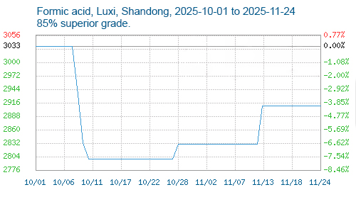 Formic acid prices have remained stable recently. As of November 24, the benchmark price of domestic industrial-grade 85% formic acid was the same as the same period last week (November 17), up 3.93% month-on-month and up 2.11% year-on-year.
