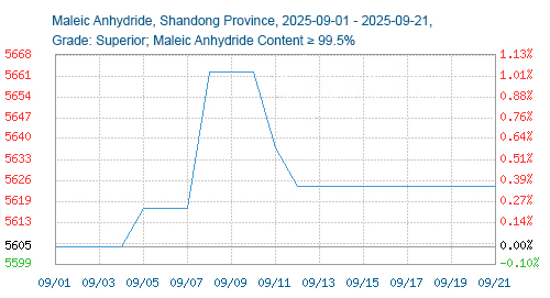 In mid-September, the domestic maleic anhydride market fell slightly. As of September 21, the average market price of maleic anhydride produced by n-butane oxidation method fell by 0.22% compared with September 11.