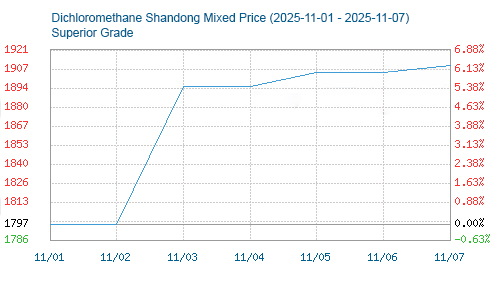 As of November 7th, the average bulk price of dichloromethane in Shandong was 1910 yuan/ton, a 6.26% increase from the beginning of the month, successfully halting its decline and rebounding. However, compared to the same period last year, the price is still down significantly by 33.8%, reflecting that although the market has seen short-term positive developments, the overall weak trend has not fundamentally reversed. In early November, the dichloromethane market attempted to emerge from its weakness driven by supply contraction, but weak demand limited the potential for price increases.